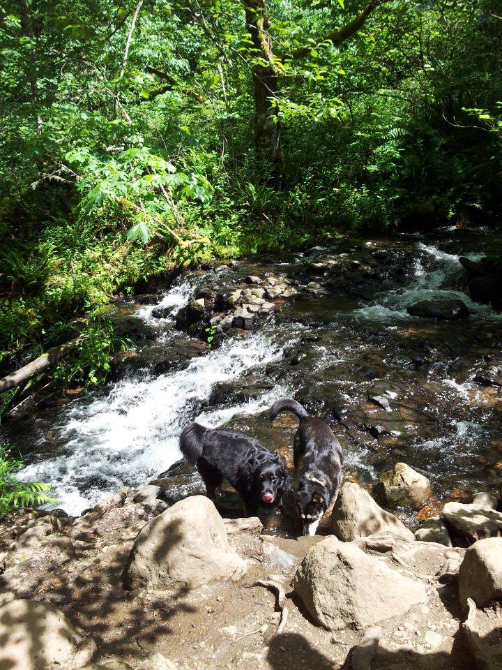 Unlike a lot of the waterfall hikes in the Gorge area, there isn’t much water along this one, so bring some extra for the pooches, they will be thirsty when you get to the top! The only water you will encounter along the way (shown above) is Coopey Creek, 0.7 miles from the trailhead. You will see a glimpse of Coopey Falls (hidden behind the tree above) just before you hit the creek.