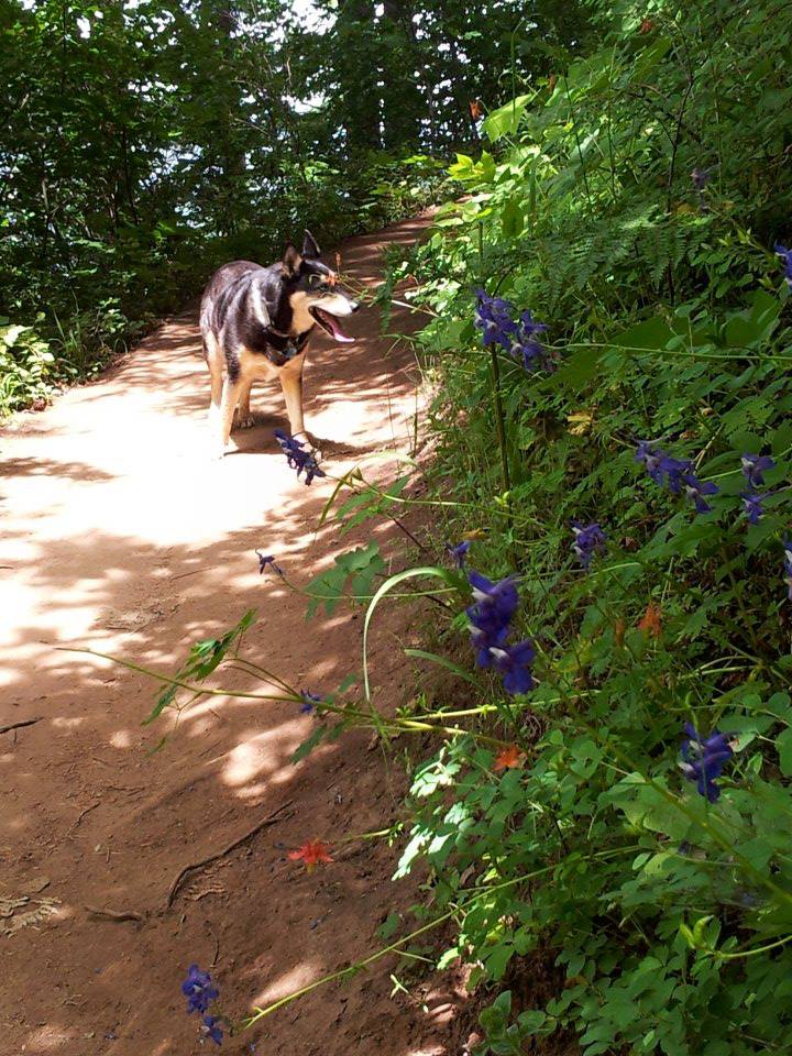 With a high point of 1,640 feet – this was a rewarding hike both in beauty, and exercise. The book I use for the Columbia Gorge area hikes: “Day Hike Columbia Gorge, the best trails you can hike in a day” by Seabury Blair Jr. (2011 edition) – mentions a campground another .5 miles up a trail from the “top” for hikers that want to avoid the “vertigo cliff” feel. We didn’t go on to see this camp, but it’s an option and apparently a little creek runs through it, a bonus for thirsty dogs and tired hot feet!