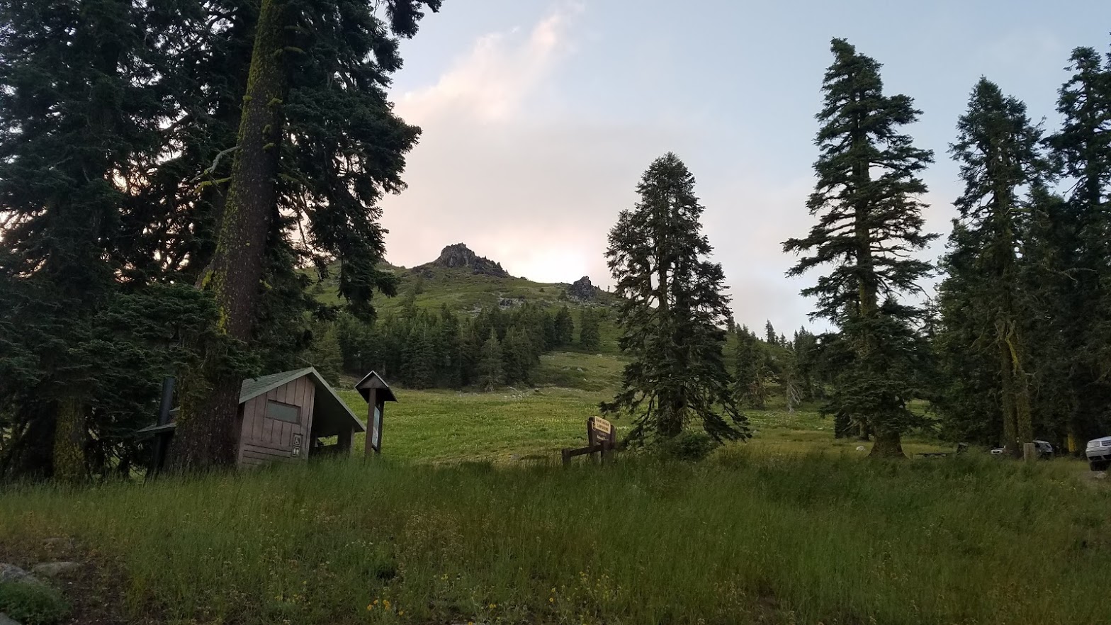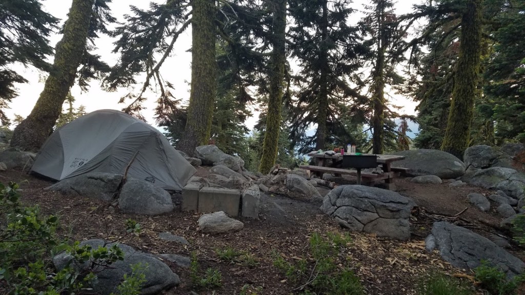 Towards the end of the day we were feeling it. My feet hurt, my shoulders hurt, my waist hurt…we were looking forward to camp. It took a little bit of finding, but we arrived at Mt. Ashland campground, a free car camping spot with vault toilets and picnic tables about .5 miles off the trail. We had another night of amenities!