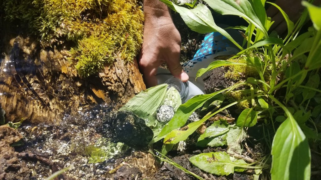 We filtered our very first water on the trail, .3 miles up from Long John Saddle, and paired it with a lunch break. It was a little stream, but someone built a tiny waterfall out of a leaf up the hillside that worked perfect for filtering. This trick would come in handy plenty more times.