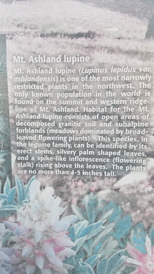 We walked around the campground and found some really interesting info on the kiosk board. Check this out about Mt. Ashland Lupin: