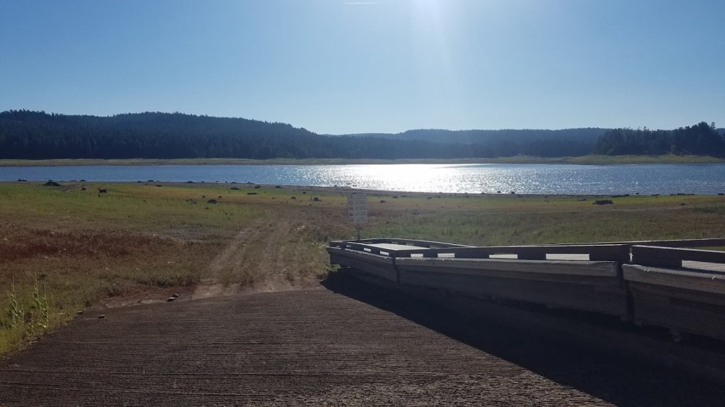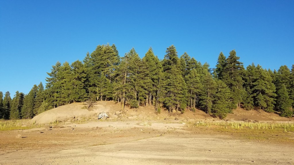 Our evening destination of Klum Landing Campground, on the shore of Howard Prairie Lake, was technically closed this year due to low water levels, but I figured we could easily just walk in.