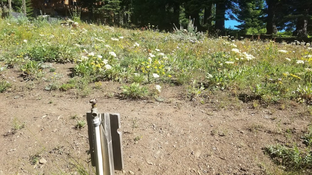 The Mt. Ashland Inn used to serve PCT hikers, but is now a private residence. Thankfully they have maintained a water spigot for hikers to use. I wasn’t sure it would be turned on this year amid the pandemic, but it was! With proper use of hand sanitizer, water bottles can still be filled. We enjoyed a little break snacking at the picnic table overlooking a beautiful garden full of vegetables and flowers.