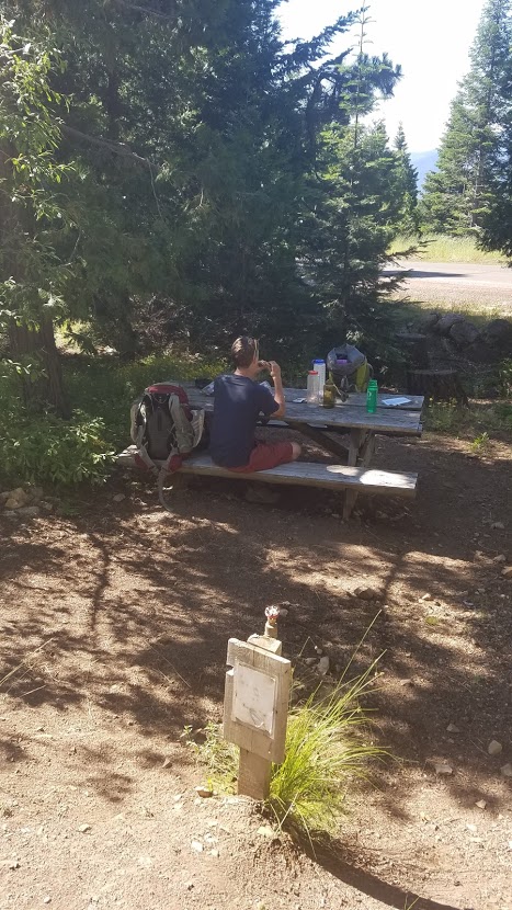 We met another hiker along the way, *Thomas. He was doing all of Oregon as well, but had a hurt knee, and was taking long breaks. We all filtered water at a piped spring (marked by a post in a grassy clearing). We planned on camping only 2 miles ahead near a pond, but we figured water from a piped spring is always preferable to a pond.